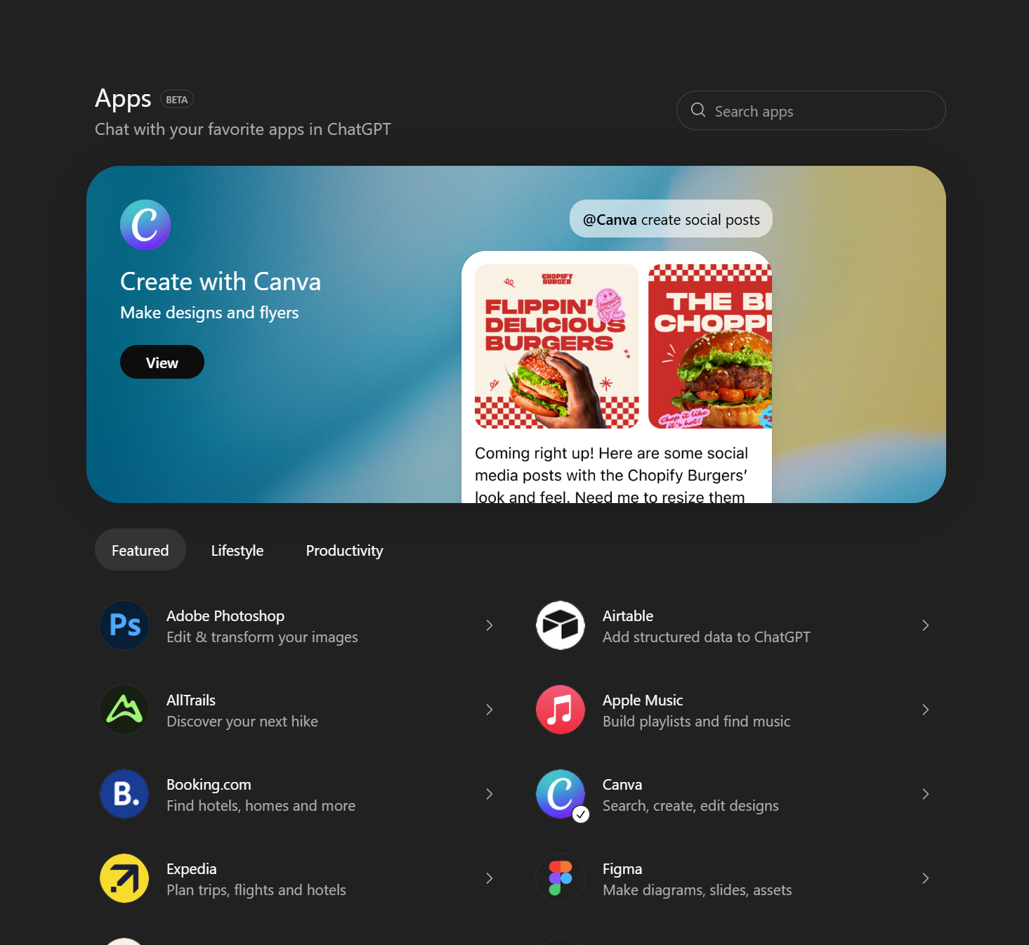 Think of them this way, you’re working on something, and instead of leaving ChatGPT to go find another tool, you bring that tool into the conversation with you.